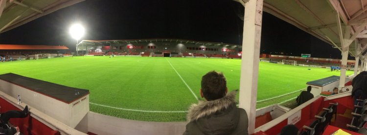As I was summarising on the radio, this wasn’t really a proper away day for me! The rather amusingly named Kuflink Stadium is a typical non league ground, very similar to Aldershot’s Recreation Ground in that is very traditional (see also: rickety). It’s a little tired but inoffensive. On one side though is a new stand that looks very smart and the plans for further development – including replacing the open terrace at one end – are impressive. They’re a forward thinking club with plenty of potential and good backing, but pleasingly it’s all been achieved in a very sustainable fashion and they certainly aren’t living beyond their means. The close proximity to Ebbsfleet International, meaning fast trains to London and plenty of parking, makes it very convenient.
