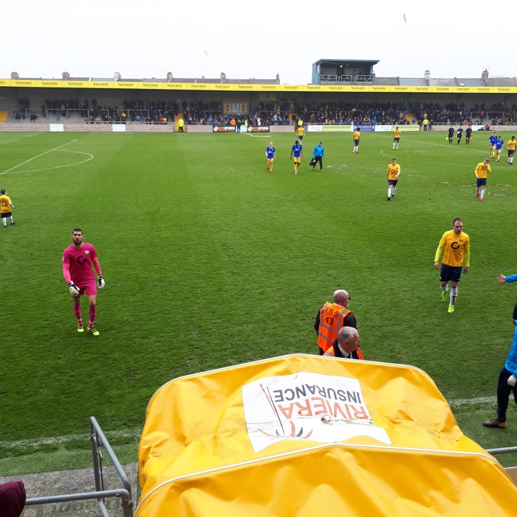 Torquay appeared to throw a bit of caution to the wind today perhaps trying to exploit a Halifax team playing their fourth game in eight days by pinning them back. Indeed, I can’t recall so many efforts at goal in a first half for a long time and a ‘shoot on sight’ and ‘cross it early’ policy appeared to be adopted in order to keep the pressure on the Halifax defence.