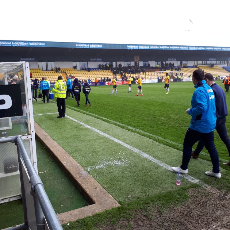 Torquay appeared to throw a bit of caution to the wind today perhaps trying to exploit a Halifax team playing their fourth game in eight days by pinning them back. Indeed, I can’t recall so many efforts at goal in a first half for a long time and a ‘shoot on sight’ and ‘cross it early’ policy appeared to be adopted in order to keep the pressure on the Halifax defence.