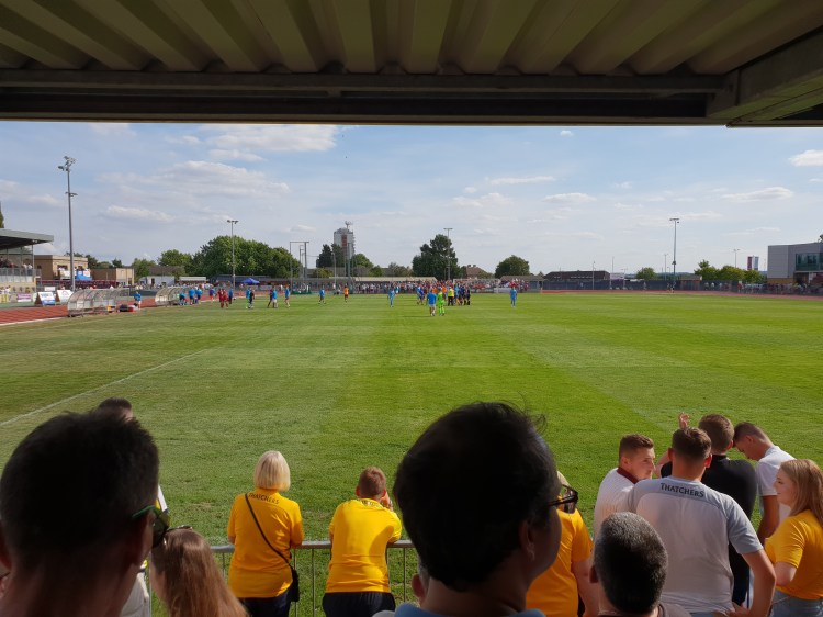 Chelmsford is only about 40 minutes from London by train, so it was a fairly easy trip with a hangover. This is even factoring in the fact that I missed my train (thanks TfL) and made a fool of myself in front of a local bus driver (don’t ask). The ground was a tad awkward to get to, as it’s a way from station and I couldn’t be bothered to walk. The Melbourne Stadium is a multi-purpose sports complex that had decent views of the pitch, but a discus/javelin cage in one corner and a running track round it that gave it sort of a budget London Stadium vibe. Just imagine what a track and field day would do to their pitch (not as much damage as Truro in the winter I imagine). This meant that from certain parts of the stands you were quite some way from the pitch, not that you were missing much. The locals were friendly enough, but £15 to get in was steep considering the level of football. The attendance of just over 1,000 was impressive, but I reckon a good 300-400 of those were the Yellow Army, which is a credit to the club. Overall, a decent day out spoiled by ninety minutes of football.