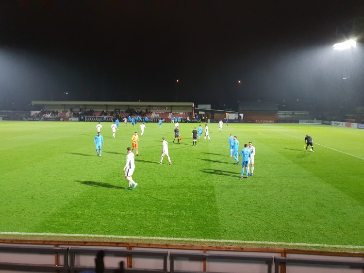 Into extra time we went, and it only got colder and wetter! United started extra time with a lot less fire than they had in normal time as you’d quite rightly expect. Boreham Wood looked pumped and on 96 minutes that man Shaibu again put them 2-1 up. When the ball came to the edge of the box, he was given 2 seconds to much time after taking a poor touch on the edge of the box and hit it low past MacDonald. He seemed to have thought he could’ve done better as it hit him on the way in, but there was too much on it for him to save. Cameron was sent off for bringing his man down and United were looking tired. The home side finally put it beyond United on 113 minutes when Shaibu completed his hat trick and that was that. United bowed out of the trophy, but with a lot to be proud of.