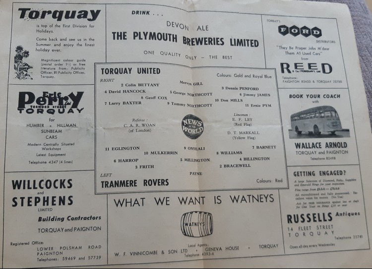 No.2 – TORQUAY UNITED 5-2 TRANMERE ROVERS, September 22, 1960