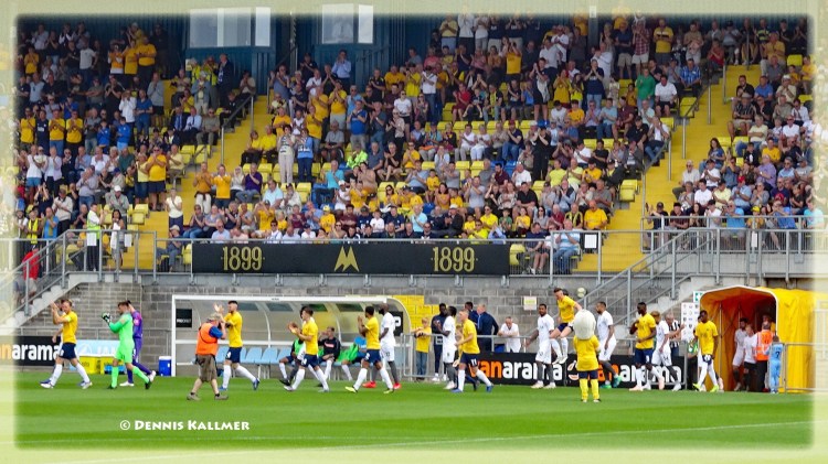 And so to the big one at a resplendent Plainmoor, still sparkling on a warm and cloudy August afternoon: perfect for football. In the lead-up to kick-off there was a real buzz around the ground, a mix of expectation, optimism and careful confidence, nothing beats the first day of the season. Torquay lined up in yellow shirts – with 1899 proudly emblazoned on their chests – and blue shorts, shooting towards a deserted away end In the first half.