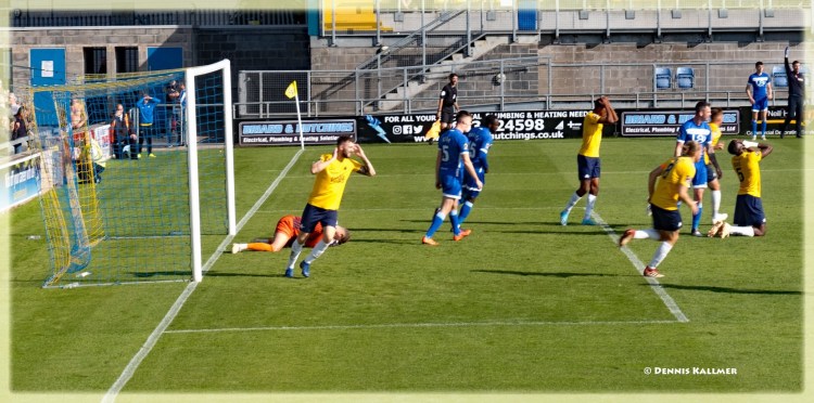 In the later stages of the game, Hartlepool turned it on again, Liam Noble whipped in a brilliant free kick, a Pools head got on it but Covolan got down fantastically at the near post to keep it out – outstanding goalkeeping! Jason Kennedy found himself one-on-one, but again Covolan came out on top, making himself look big and denying the experienced number 28.