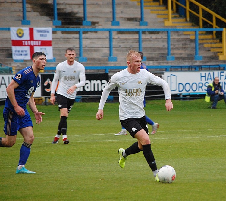 Elsewhere in the team Ben Wynter’s assured consistency is just never in doubt these days. He’s quietly confident, makes the right decisions and takes no unnecessary gambles that could harm the team. Sure, we conceded another 2 goals on Saturday, but the game was won early and those goals had no impact at all apart from glossing over United’s superiority a little. TT’s sponsored player (have we mentioned that before?!) Kyle Cameron scored his first goal of the campaign as well, watched on by 6 TT lads who enjoyed every minute. Kyle has looked uneasy at times this season with the step-up, however he is clearly feeling more comfortable with Robbie alongside him. The centre back should score more goals with his strength and aggression attacking the ball, and we await one at Plainmoor to celebrate!