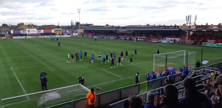 Standard National League dross. The linesman nearest us didn’t want to make any decisions at all. Keating had a good call for a penalty turned away when he was nudged in the box. Lots of ironic cheers from the Yellow Army when a decision went our way. Let a lot go for both sides.