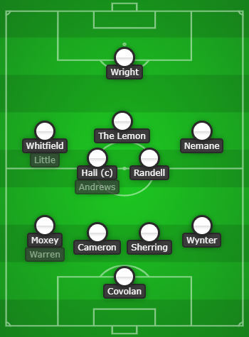 As mentioned, a 451 with Evans just behind Wright. Looking at that starting 11, it’s arguably our strongest with Little coming in for Randell at some point. All across the pitch there is a beautiful balance of experience and youth. The defence is more assured with Cameron maturing and Moxey holding the back line together. Asa controls the midfield and Danny leads the line. This side has a strong resemblance to the last conference promotion under Buckle in my opinion.