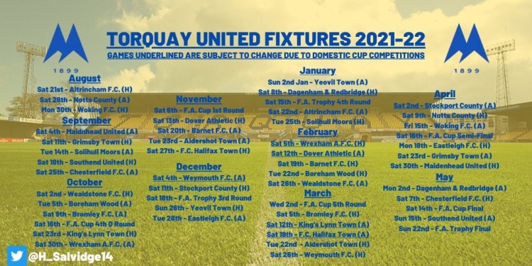 Who loves an open terrace in winter at the beginning of January? As long as us and Yeovil are in the same division, I suppose we should come to expect it. Torquay begin 2022 away at Yeovil before hopefully contesting Manchester City in the 3rd Round of the FA Cup, if not then it’s home to Dagenham, same thing right? We end the month with a trip to Altrincham and host Solihull on a Tuesday night with a potential FA Trophy game in the middle of the month should we take the competition seriously again. Honestly, I couldn’t care less but that’s just me. Hopefully if we do progress through it, we are at home the entire way this season.