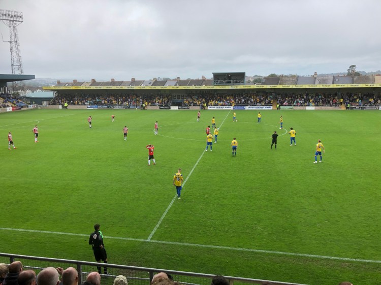By the time that yellow card came along, the Gulls were behind. A cross from the right wing was glanced past both of our central defenders and Marcus Dinanga had time (lots of it) and space (plenty of that as well) to guide the ball past debutant goalkeeper Mark Halstead.