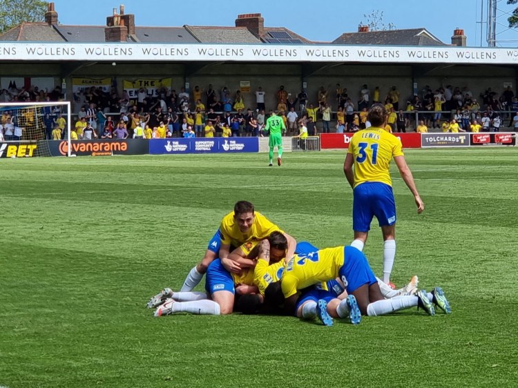 As the timer ticked over to 90, it was last chance saloon for the boys in Yellow. A long thrown in from substitute Ryan Dickson wasn’t dealt with, and the ball eventually fell to Ben Wynter who lashed home a fantastic left foot shot. Cue the pandemonium. 3-3 and a point secured in the most dramatic of ways!