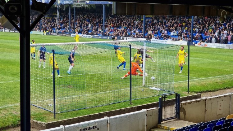 The Gulls started the game on top, playing the ball well through midfield, a chance came for Evans that the majority of the Yellow Army could’ve sworn was heading into the back of the net but Southend cleared off the line.