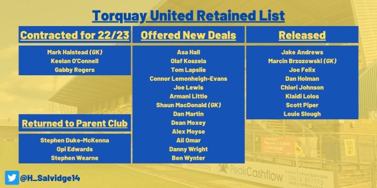 Yep, that’s our retained list. Just three players, all who have rarely featured in the Torquay United first team throughout the season.