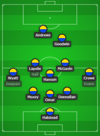 No change to the 3-5-2/5-3-2. Donnellan in for Marshall and Andrews back up front …although not convinced either was fully match fit. Both made it through 90 minutes though. No idea where Hughes has gone, maybe the same mysterious way Ashley Nathaniel-George departed. Only real change came late on when Iseguan came on and played much more advanced in more of a 3-4-3.