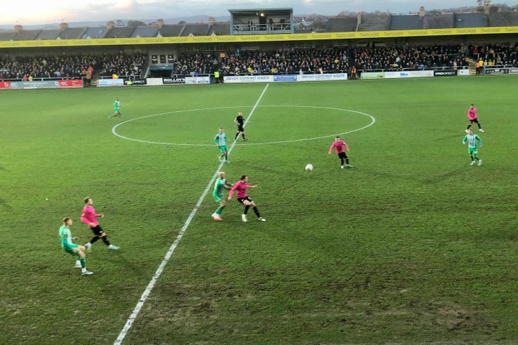 The panic phase then set in. I have never seen a team panic so much and completely lose basic discipline. Thankfully Yeovil could not take advantage. The game became a circus for the last 10 minutes. I can’t comment on the off the line clearance, from my view it looked like definite contact, or even a handball. Then in pure National League fashion, a truly awful piece of refereeing overshadows how awful the team you support is. How can one carded full back not be sent off and yet the other is, for the same offence? Full time and a red card for Gary Johnson afterwards, no Merry Christmas at Plainmoor.