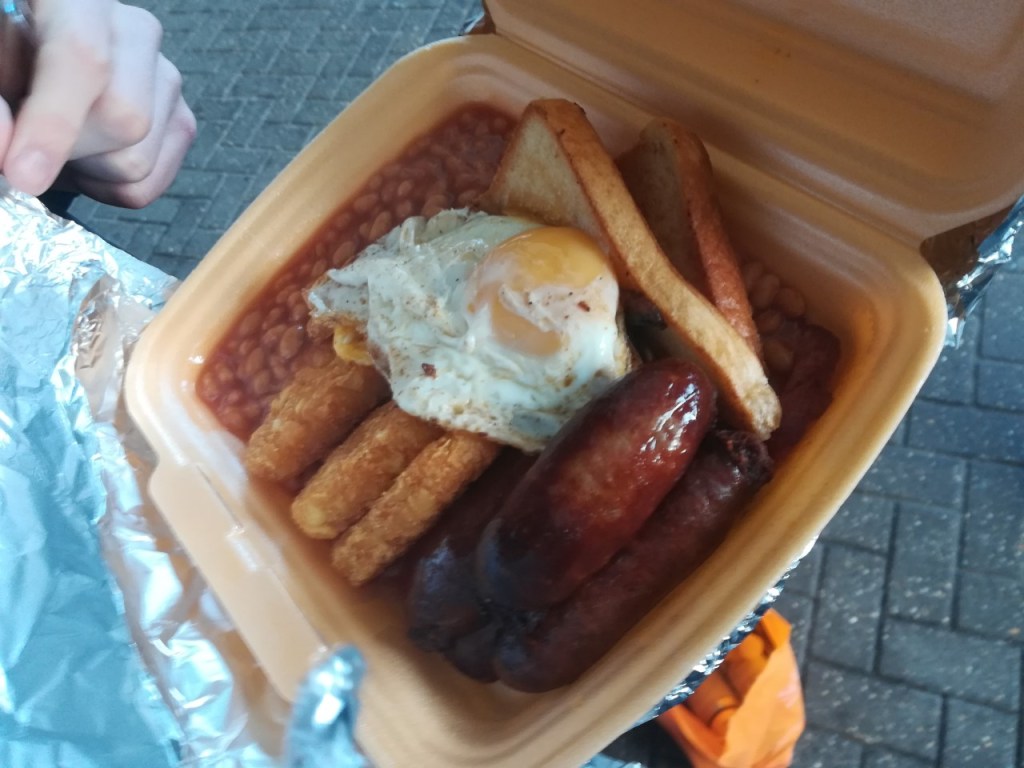 Next train is delayed too. They hadn’t managed to attach the pointy bit to another pointy bit at Plymouth and it is consequently only half the intended length. Luckily there is still plenty of room, and we get a table, where one of our number lays into the Takeaway Full English he has somehow procured during the unscheduled wait at Newton Abbot. Not sure I can get on board with baked beans in polystyrene but the chap pushing the refreshments trolley gave it his seal of approval.