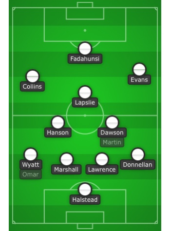 4-3-2-1 with Collins & Evans supplying the width. Lapslie the most advanced of the midfield trio. You’d be forgive for thinking our full backs were playing as wing backs given their positioning. Had nothing to come off the bench to add that spark.