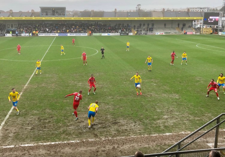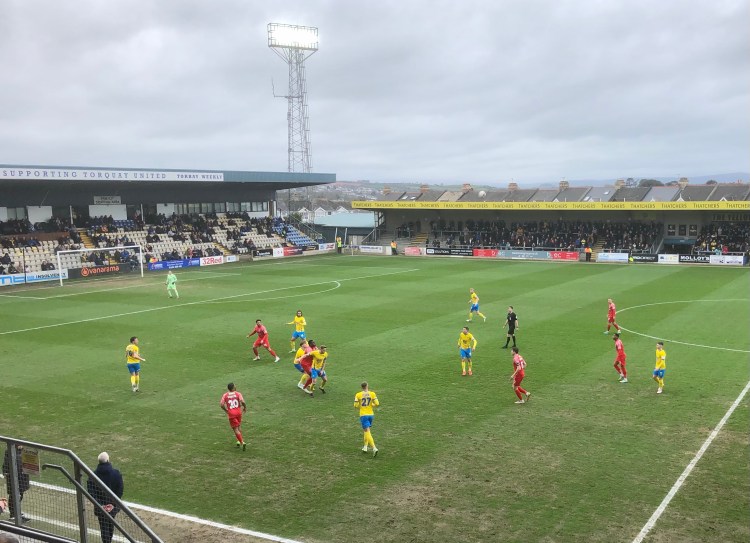 The game was dreadful, a first half of nothing until the 45th minute when Kevin Dawson won a good challenge 25 yards from goal, the ball making it’s way to Aaron Jarvis who arrowed a brilliant shot into the far corner to give Torquay a half time lead.