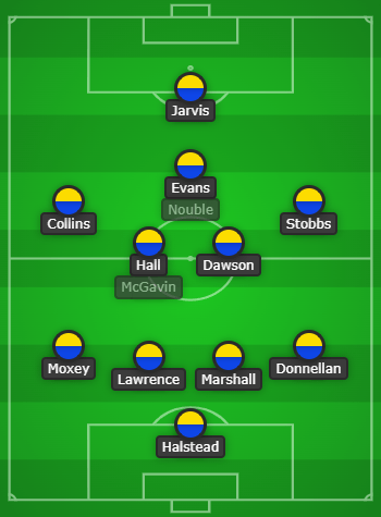 4-4-1-1. Gary Johnson decided against putting Nouble into the line-up, and instead slotted Lewis Collins in with little success. Kieron Evans tried to make things happen behind Aaron Jarvis, whilst Hall and Dawson did what they could around the midfield to take the game to the Daggers.