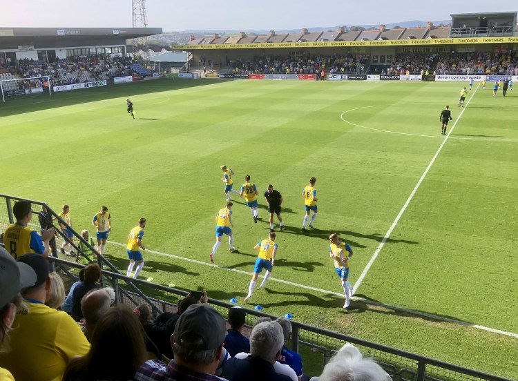 To many peopleโs surprise there were no late additions to this already threadbare squad, which included two teenage defenders, a half fit Asa Hall and a backup goalkeeper on the bench. The departures of WJD & Pearce seemingly opened the door to incomings but it wasnโt to be as United fielded a fairly familiar lineup. There was a recognisable figure between the Stones’ sticks as Lucas Covolan returned to Plainmoor for the first time since his Ashton Gate heriocs.