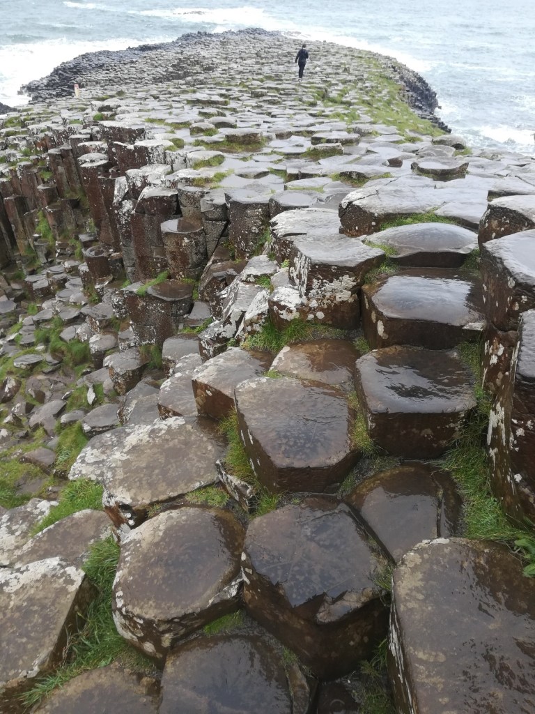 A coach trip along the beautiful Antrim coast to the Giants Causeway. Some great scenery, rainbows and lots of rain. On a clear day you can see much of Scotland. On a wet one Ross Marshall needn’t have bothered with that eye operation! The Causeway is probably a “must see”, but in pouring rain with an hour and a half to kill before the bus returned it wasn’t a great spot. It’s not a causeway. It’s a large pile of interestingly shaped rocks which goes about 50 yards out to sea.