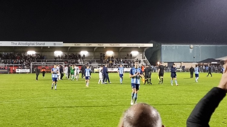 As a yellow pyrotechnic dispersed, there was a sense we could go on and win this. However, ironically, it was the Gulls hopes of victory that went up in smoke as Ross Marshall, who had been subbed on at half-time for Asa, was judged to have handled the ball inside his own box. Hard to tell from the away end, however, there did not seem to be too many protests from the Gulls players or management. Reuben Reid, who was impressive all night with his hold up play and in front of goal, calmly sent Halstead the wrong way to leave the Gulls behind once again.