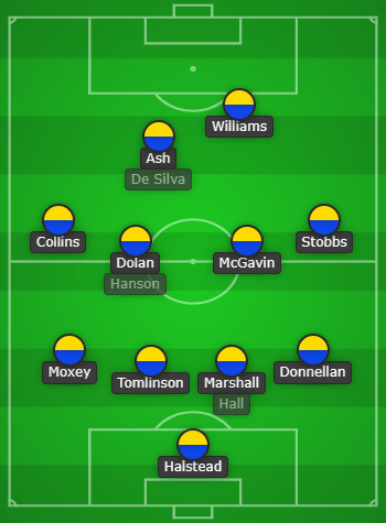 At the best of times I can struggle to identify formations. Tonight the shapelessness and limpness of our front six defied much scientific explanation. There was clearly a back four. McGavin played not far in front of them, with Ash to his left and Stobbs about half a mile to his right. Hanson probably couldn’t tell you where he was. Collins ambled around slightly further forward to no effect whilst Williams chased shadows.