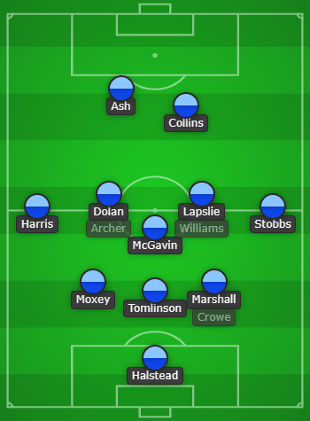It was a 3.3.2.2 with McGavin, who had a better game, sitting in front of the defence with Stobbs and Harris at wing back, although in reality Marshall was able to play at right back for much of the game. For once we dominated the midfield and created plenty of chances, four of which were dispatched.