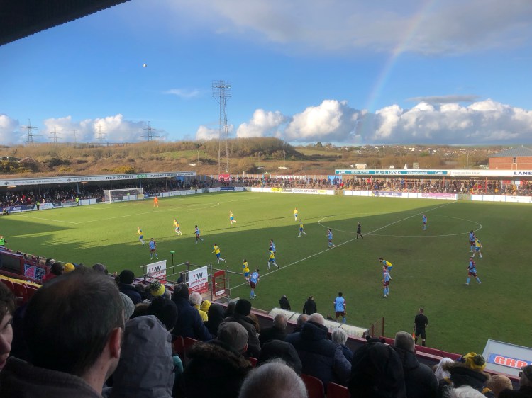 As the half hour mark approached, I edged closer to the gents to run for a mid game wee, trying to time it so I would miss none of the action. I thought I had picked my moment well, however, shortly after entering the facilities I heard the away end erupt with noise and we had indeed taken the lead. In my 20 or so years of watching Torquay, I don’t remember ever having missed a goal at a game before, but nevertheless I apologise for the lack of details I can offer on our opening goal. It was scored by the impressive Arkell Jude-Boyd after a quick counter attack from the Gulls, but apart from that I have little else to say about it I’m afraid.