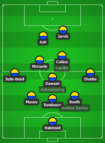 On 22 minutes the latest in a series of passing errors by Tomlinson saw Taunton in on goal for an easy lead. The visitors doubled their lead four minutes later when Evans outjumped his marker at the near post to head up and over a helpless Halstead from a long throw.