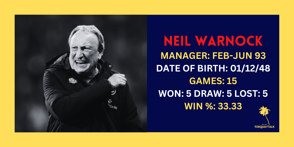 When Neil Warnock first arrived at Plainmoor in February 1993, his career was at a crossroads.