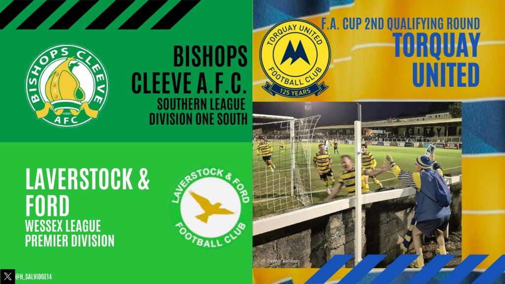 So it’s Bishops Cleeve or Laverstock & Ford in the 2nd Qualifying Round of the FA cup for Torquay this season. It always takes me by surprise how early we enter at this level, but I enjoyed last season’s trip to Wimborne Town at this stage last season so it does throw up some good days out!