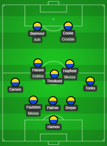 Hayfield smashed a great chance high, wide and horrible. Brad Ash replaced Seymour and chased everything. Lirak Hasani snapped into tackles and always carried a threat in a performance of great energy and vivacity. Our other midfielder Oscar Threlkeld broke up play with ease and looked every inch the former League One enforcer.