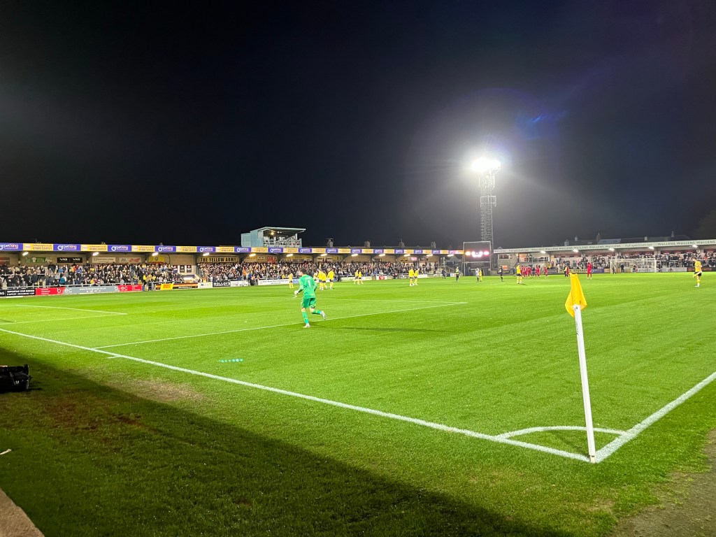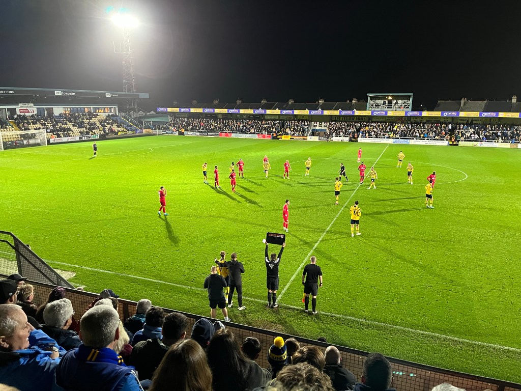 There were changes at half time with Mussa replacing the ineffective Threlkeld and Jenkins Davis replacing Carson so we could go to a back four. For six minutes it looked like nothing had changed and then we scored, also out of nowhere: Chris, Ben and me were all saying the same thing (like most of you I suspect as well) it is time Mussa created something with his undoubted talent – well he did, and it was beaut. For once we won and passed the ball, knocking it into Omar’s feet which he took on the turn like he does, dropped a shoulder and lost his markers – then he looked up from 20 yards and whipped a lovely curling shot beyond the despairing dive of Haigh into the corner. The fantastic crowd for a Tuesday evening, with Champions League games on telly, of 3701, went wild – well minus Worthing’s 24 fans.