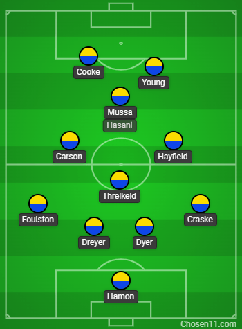 I’m guessing that was a 4 3 3, with Mussa sitting behind the front 2 of Cooke and Young in an attacking shape. I wonder whether an earlier change might have harvested a winning result, Hasani coming on late for Mussa when the struggling Threkeld might have been the more sensible switch.