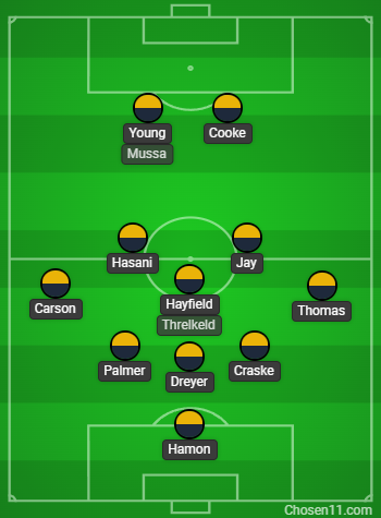 Paul went for a 3-5-2 this time – whether that was because of the players he had at his disposal or because of studying Borough I don’t know. It makes the best of Thomas and Carson and let Hasani get forward. The floating Jay looked good in this formation.