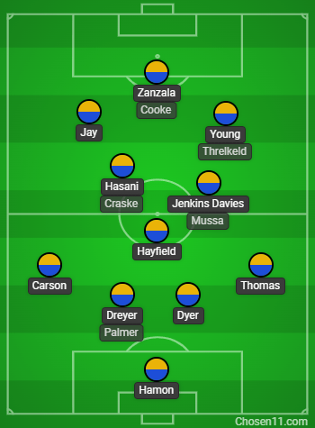 Paul Wotton once again started with a 4-3-3 with Jordan Young and Matt Jay playing either side of Offrande Zanzala in a front three. However, once Sam Dreyer went off injured, Paul Wotton switched to a 3-5-2 formation as Finley Craske replaced Lirak Hasani to form a back three with Ed Palmer, who replaced Dreyer, and Jordan Dyer.