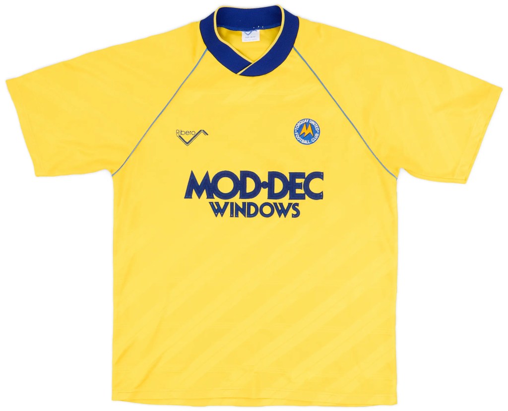 People will remember our 3rd promotion on penalties in the playoffs at Wembley in 1991 for the classic yellow and white striped Matchwinner shirt, but throughout that season, our home shirt had been the Ribero all yellow jersey.