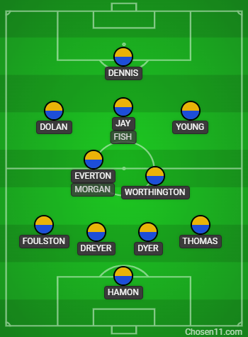 4-4-2/4-2-3-1 – Similar arrangement to last time at Plainmoor, though Louis Dennis often roamed back into midfield, whilst Matt Jay moved into the striking role. The result was patches of smart attacking play outside the area, but little oomph inside it.