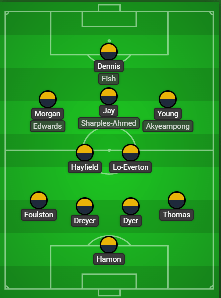 Morgan and Young were enjoying themselves on both wings, enjoying plenty of the ball, creating chance after chance, it wasn’t long till one of them got in on the act. Again Dennis was involved receiving the ball with his back to goal in the area, a neat back heel released Jordan Young who made no mistake. 3-0.