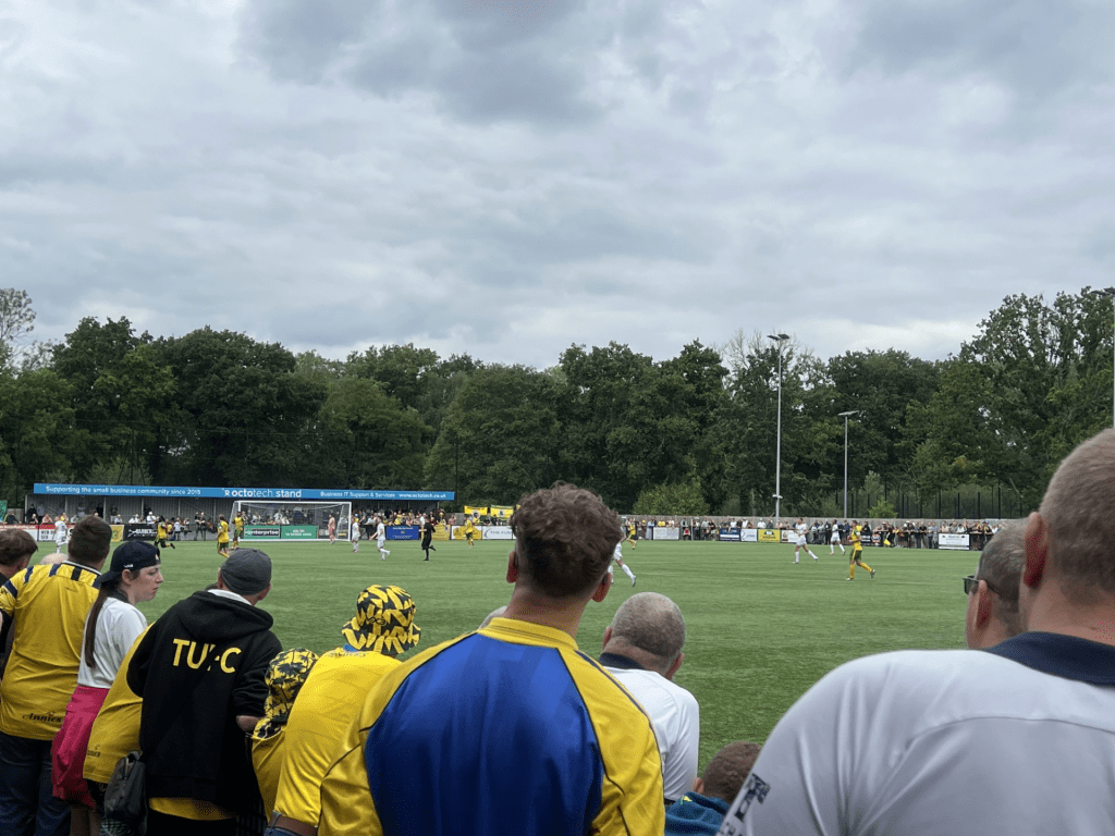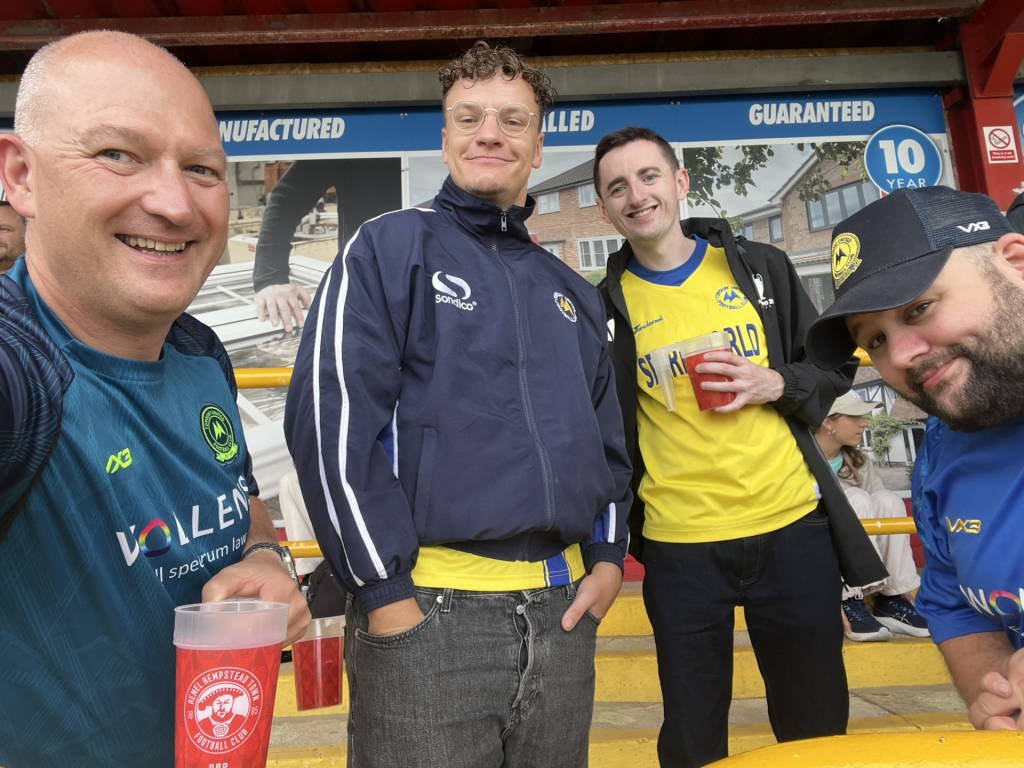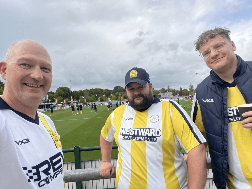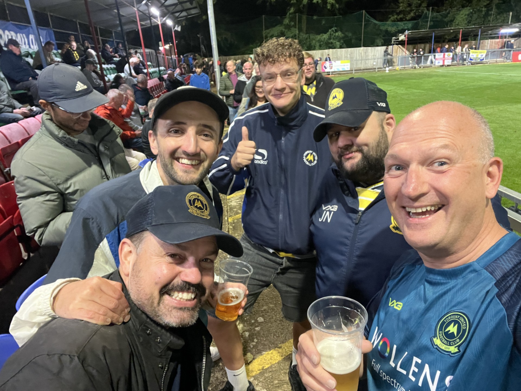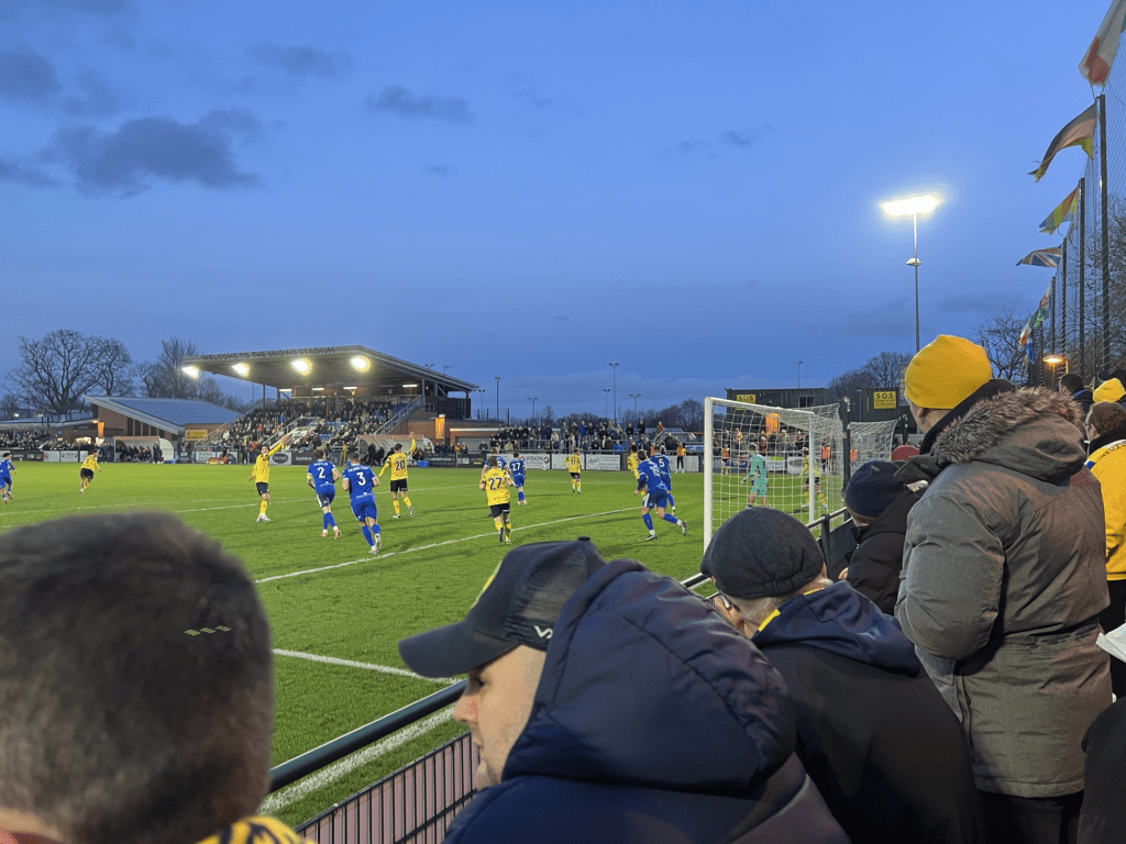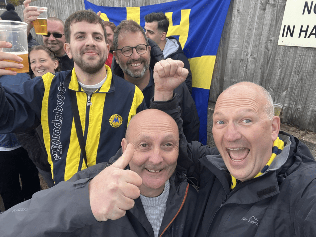 A taxi ride to the Ray-Mac Stadium found us in Salisbury’s clubhouse full of Gulls fans with ale on tap as we continued the party before taking our place on the terraces alongside a sizeable contingent in Yellow.
