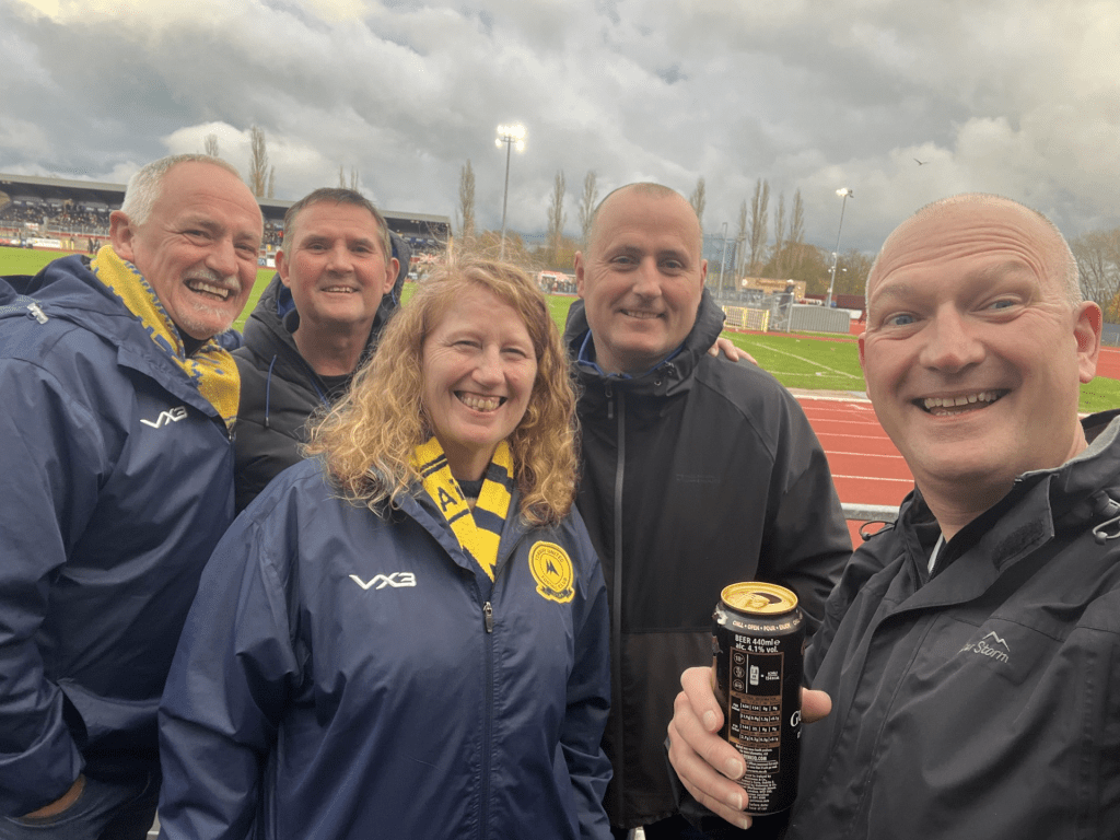A friendly local pointed us towards a short cut back to the Snows Stadium, and we joined up with more members of the Yellow Army in the under-stand bars and on the open terraces, such as Roger from the Hampshire Gulls, and three generations of the Bittlestone family.