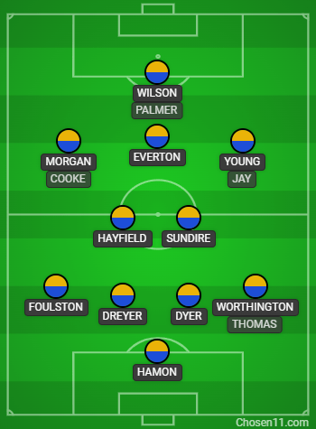 Two changes to United’s eleven, with Young back from his suspension and Sundire making his first start since the August bank holiday.