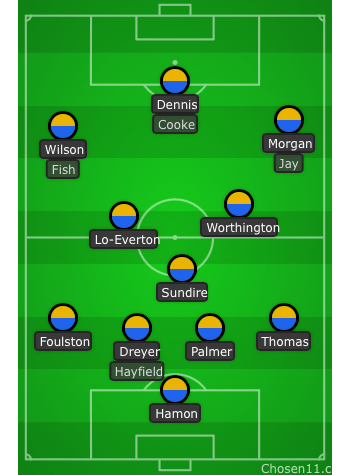 With Young continually side-lined, Morgan took the reigns on the right, with Wilson coming in off the left. A standard three in midfield with Palmer partnering Dreyer from the outset.