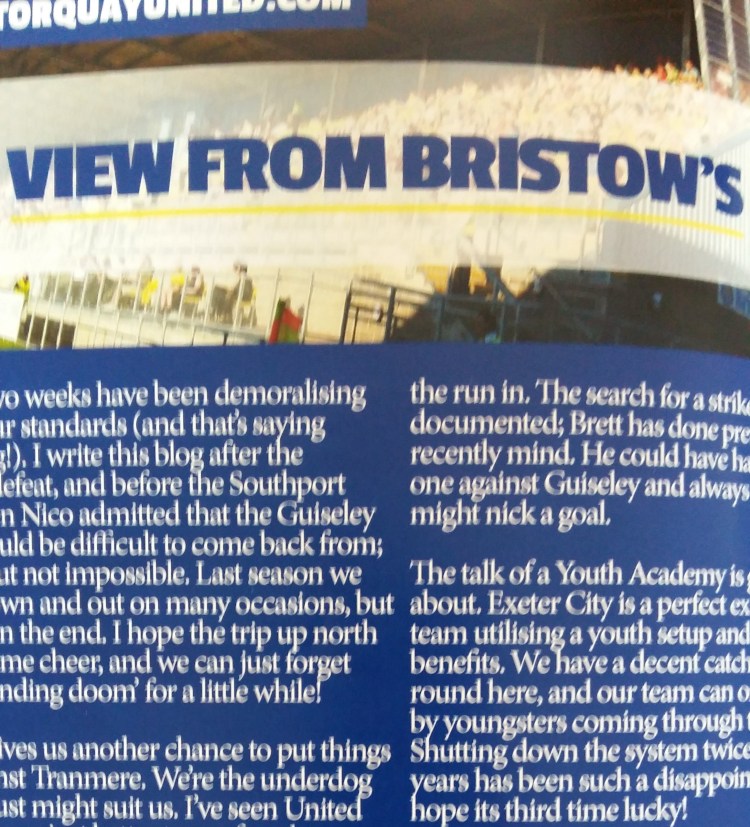 That’s a bit better isn’t it! After the disappointment and depression of Sutton and Guiseley, Nico and the boys bounced back with better results against Southport and Tranmere; meaning the Torquay United world (and my world) became a happier place! I was at the shops with my family when the Southport game was going on, […]