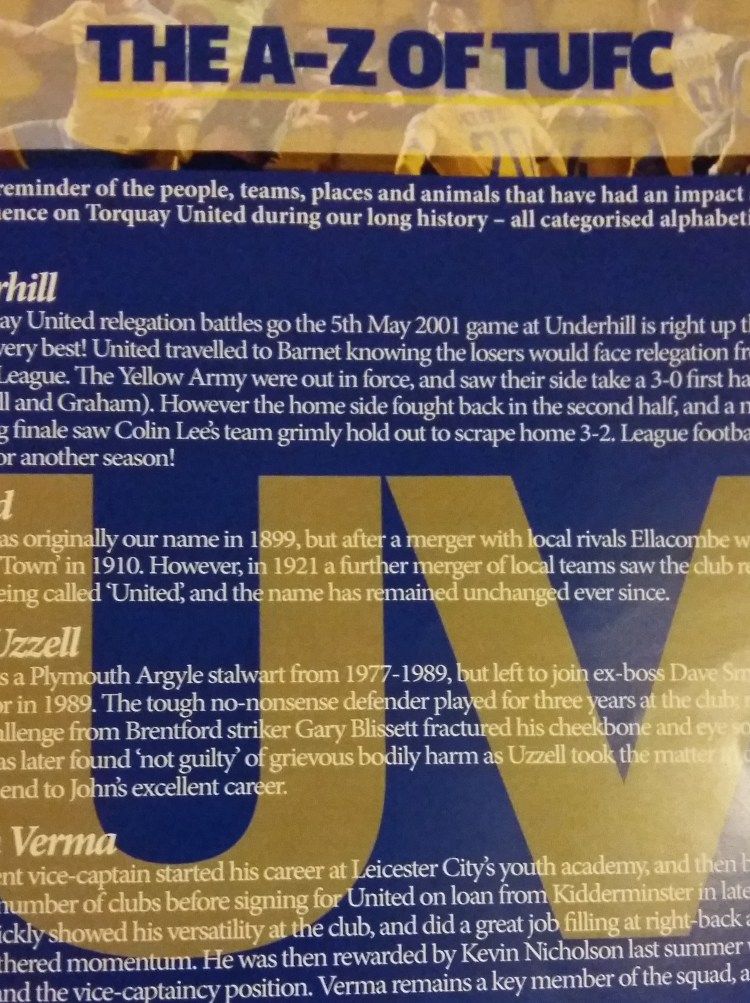 The A-Z of Torquay United A reminder of the people, teams, places and animals that have had an impact and influence on Torquay United during our long history – all categorised alphabetically. U/V Underhill As Torquay United relegation battles go the 5th May 2001 game at Underhill is right up there with the very best! […]